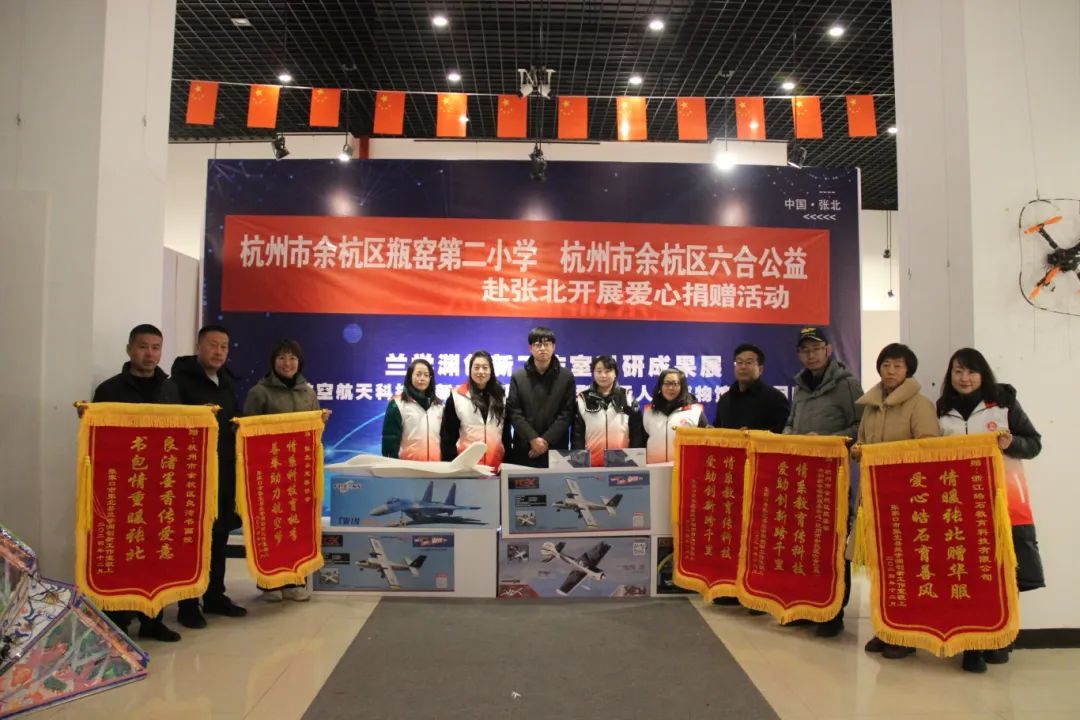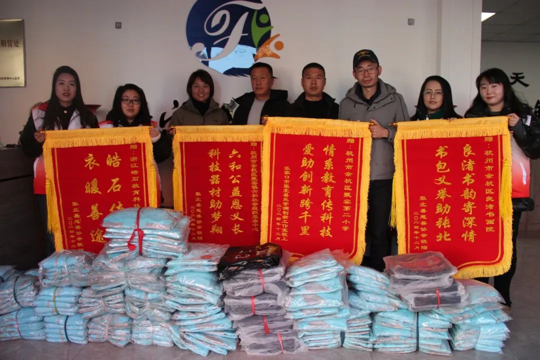 杭州市余杭區(qū)瓶窯第二小學(xué)聯(lián)合余杭區(qū)六合公益,向張北縣慈善協(xié)會捐贈了價值35000元的飛行模型器材;浙江皓石教育科技有限公司為張北縣慈善協(xié)會捐贈了170套服裝;杭州市余杭區(qū)良渚書畫院向張北縣慈善協(xié)會捐贈了27個書包。
